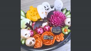 フルーツや野菜に、繊細に彫刻されたカービングは、